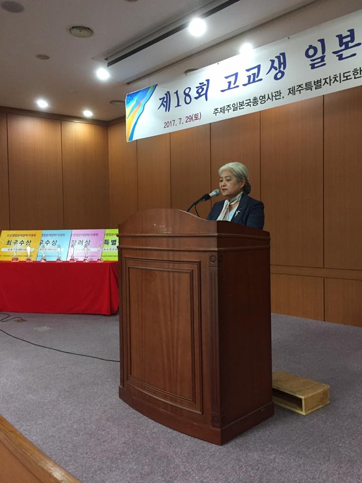 当館と済州特別自治道韓日親善協会及び日本のNPO法人大分県海外教育支援機構が共同で主催した「第18回高校生日本語スピーチコンテスト」が,7月29日(土)午後2時から済州商工会議所5階国際会議室にて開催されました。