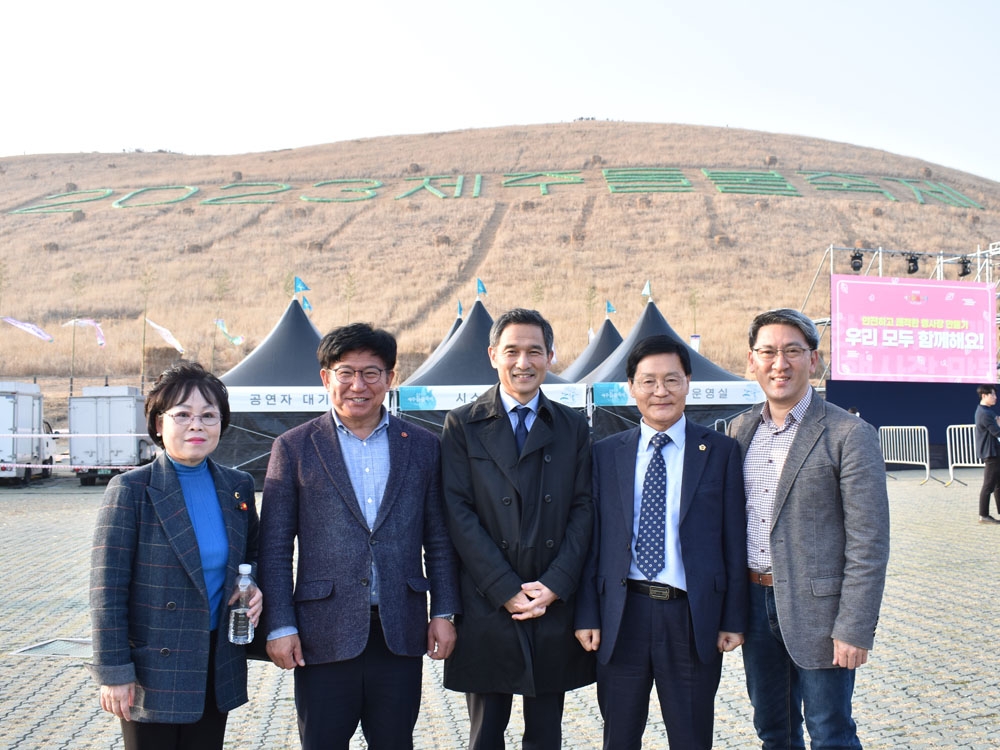 12월 28일(목), 다케다 총영사는 제주특별자치도와 제주국제컨벤션센터가 개최한 ‘제주MICE 다목적 복합시설 착공식’에 참석해 오영훈 제주특별자치도지사, 이종우 서귀포시장, 양문석 제주상공회의소 회장을 비롯한 관계자들과 MICE(Meeting, Incentive Travel, Convention, Exhibition/Event)의 중요성 등에 대해 의견을 나눴습니다.